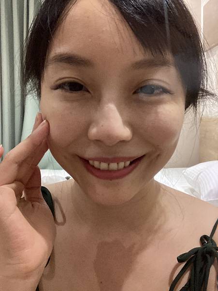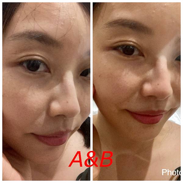使用前後,皮膚喝保水後膚色明顯的淡快兩個色階~