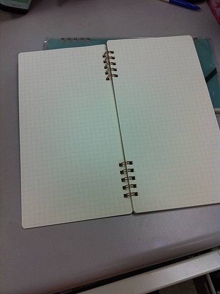 淡綠色方眼格式內頁,可自由選擇空間書寫,字體大小不用局限於制式的線條,且可隨心情塗鴉。我很愛這種不拘束的筆記本!!
