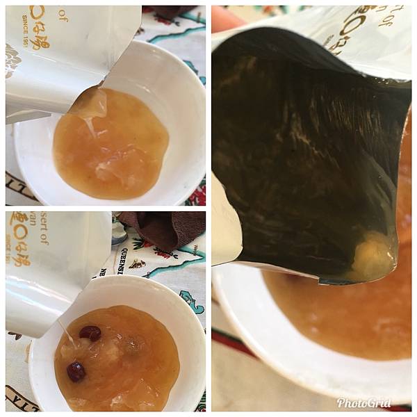 穹林露的主要原料為銀耳和福圓,紅棗和黑棗。看照片中倒出袋的芎林露,稠稠的液體都是讓皮膚水嫩的好物呀!!!