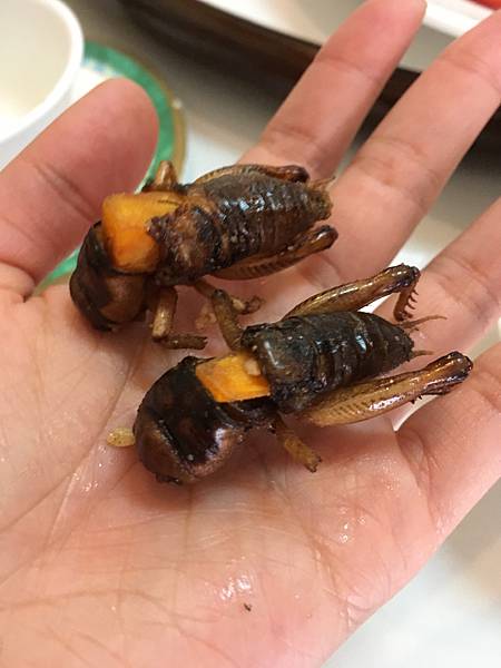 炸蟋蟀Crickets with sweet potatoes,肚子夾地瓜