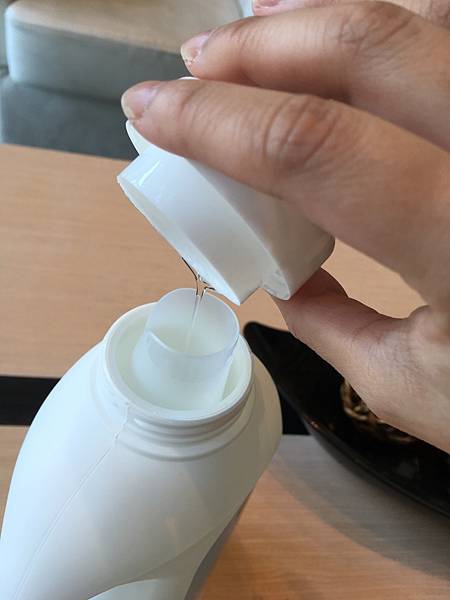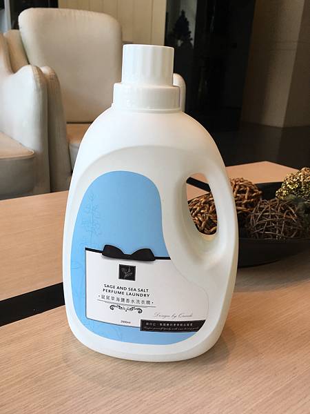 洗衣精為透明的顏色,倒出的同時空氣中散發出中性氣味的海鹽與鼠尾草的草本香,散發木質調香氛