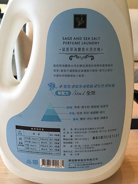 康朵出了英國梨小蒼蘭、鼠尾草與海鹽兩款香水洗衣精今天要來試試看這特別的康朵鼠尾草與海鹽香水洗衣精
