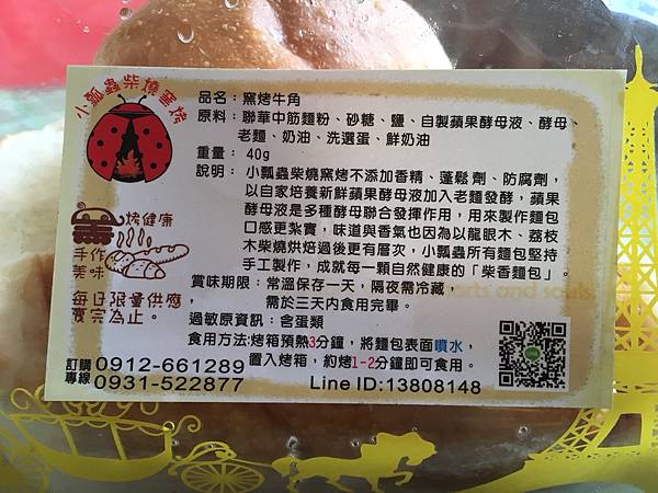 收到可愛的小瓢蟲柴燒窯烤麵包了~~內容物包含牛角麵包、原味餐包各1個 + 吐司1條